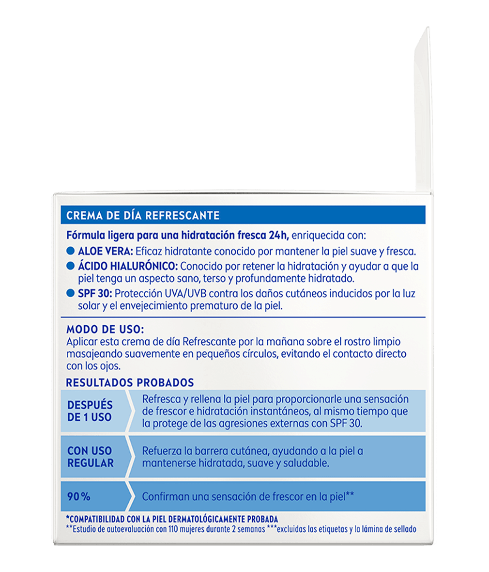 - Con protección solar SPF 30, para evitar el envejecimiento prematuro de la piel