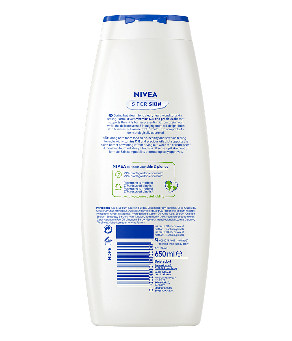 El Gel de Ducha NIVEA Creme Soft deja tu piel suave y cuidada. Su fórmula, enriquecida con Vitaminas C y E, junto con aceites naturales, proporciona una hidratación profunda, manteniendo la piel suave durante todo el día.