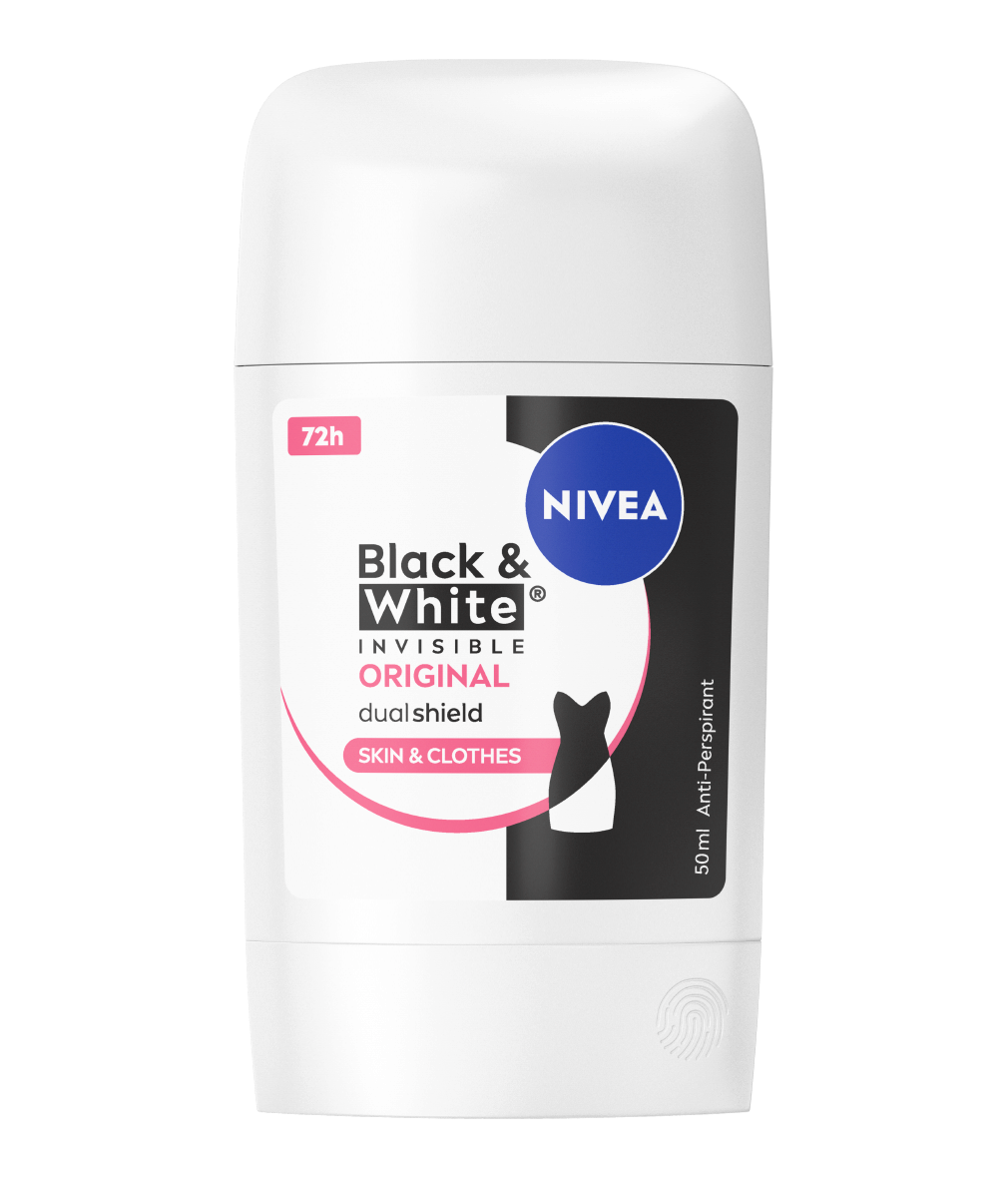 El desodorante NIVEA Black & White Invisible, con tecnología Dual Shield, ofrece protección contra las marcas blancas en la ropa negra y contra las manchas amarillas en la ropa blanca. Un antitranspirante de 72H que combate el sudor y el olor, cuidando tu piel y manteniendo tu ropa impecable.